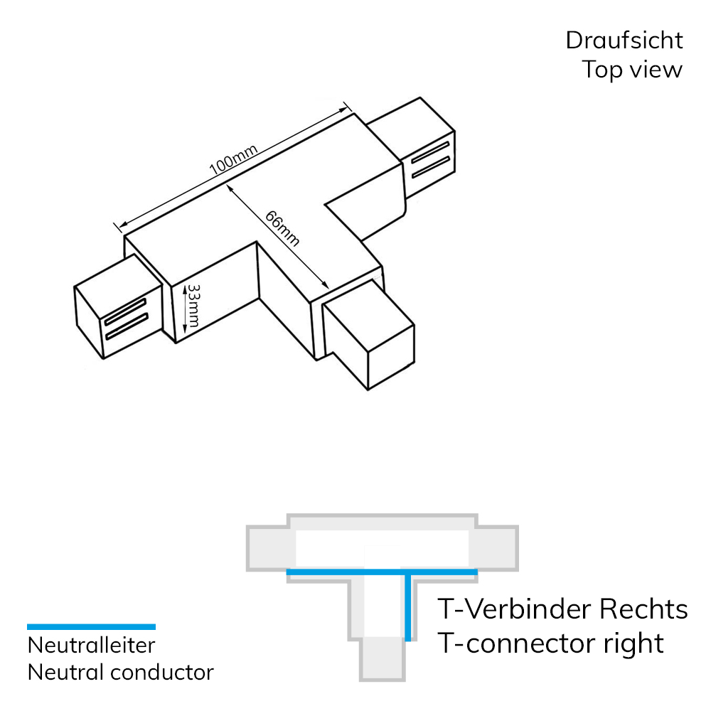 3-Phasen S1 T-Verbinder N-Leiter rechts, Schutzleiter links, schwarz