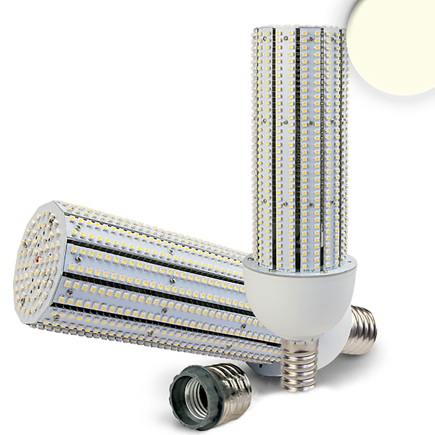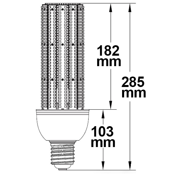 “Besonderheit: Zusätzliche Kühlung durch eingebauten Lüfter, E27 Sockel, inkl. Adapter von E27 auf E40 Ein gegebenenfalls vohandenes Vorschaltgerät muss entfernt bzw. überbrückt werden!