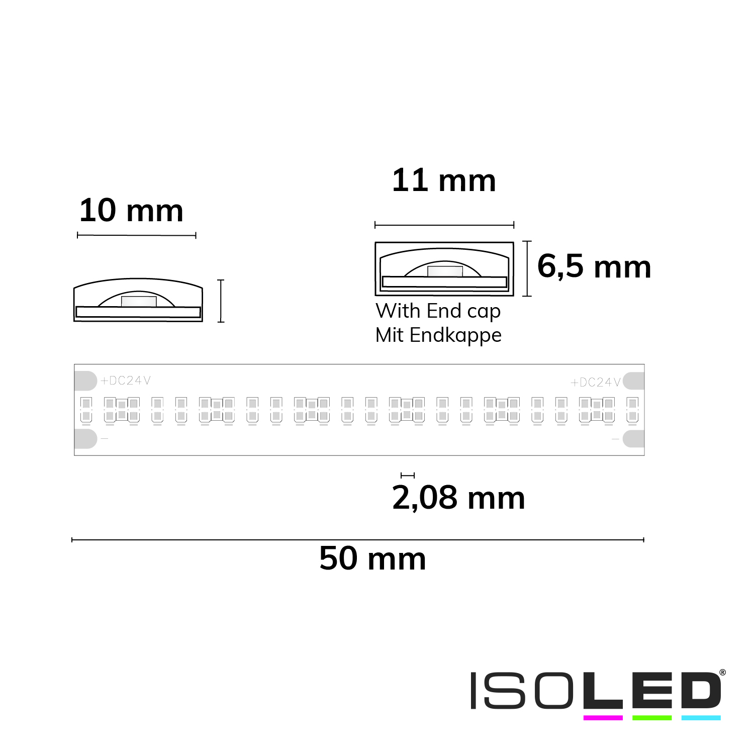 Besonderheit: Trennstelle: 50mm mit je 24 SMD | Pitch (Lichtpunkt Mitte-Mitte): 2,08mm | 1 Einheit (Rolle) = 5m | max. Flexbandlänge pro Einspeisung: 5m | Längentoleranz + Wärmeausdehnung: 1% | kein Kühlprofil erforderlich | inkl. 3M VHB Klebeband | Untergrund vor dem Ankleben reinigen und entfetten! Nicht wieder ablösen! | Silikon Verguss | BESONDERHEIT: Anschlusskabel einseitig