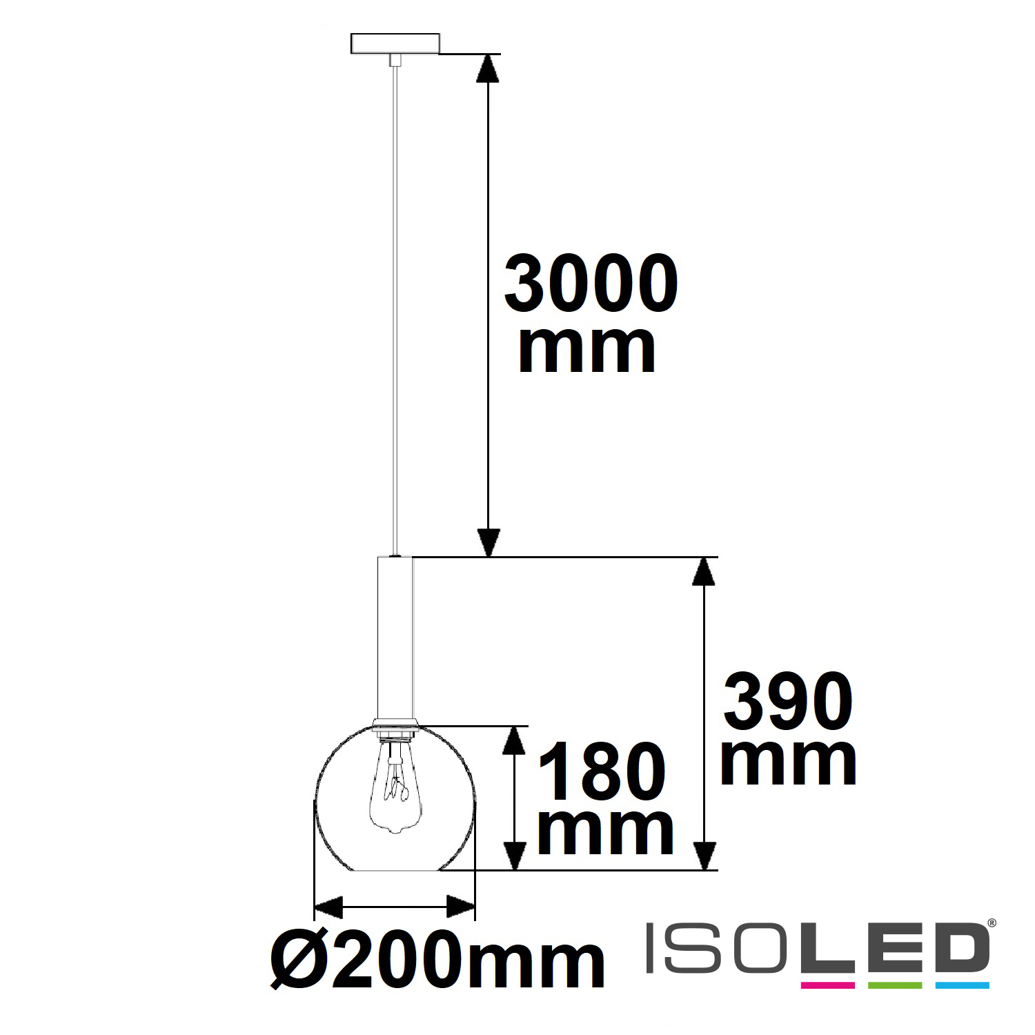 Pendelleuchte, black round Glas, E27, 20cm, 50-300cm, exkl. Leuchtmittel, exkl. Baldachin